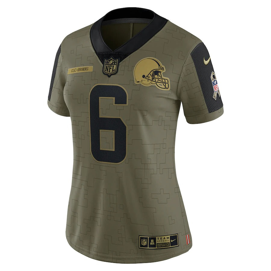 Women's Cleveland Browns Baker Mayfield Nike Olive 2021 Salute To Service Limited Player Jersey