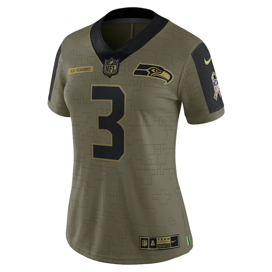 Women's Seattle Seahawks Russell Wilson Nike Olive 2021 Salute To Service Limited Player Jersey