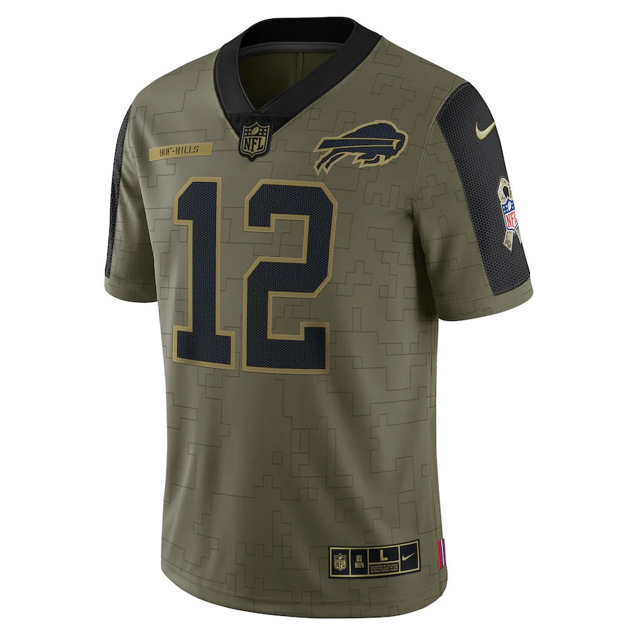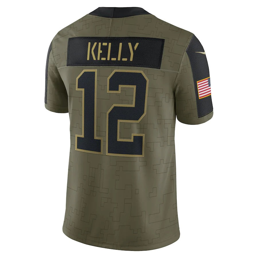 Men's Buffalo Bills Jim Kelly Nike Olive 2021 Salute To Service Retired Player Limited Jersey